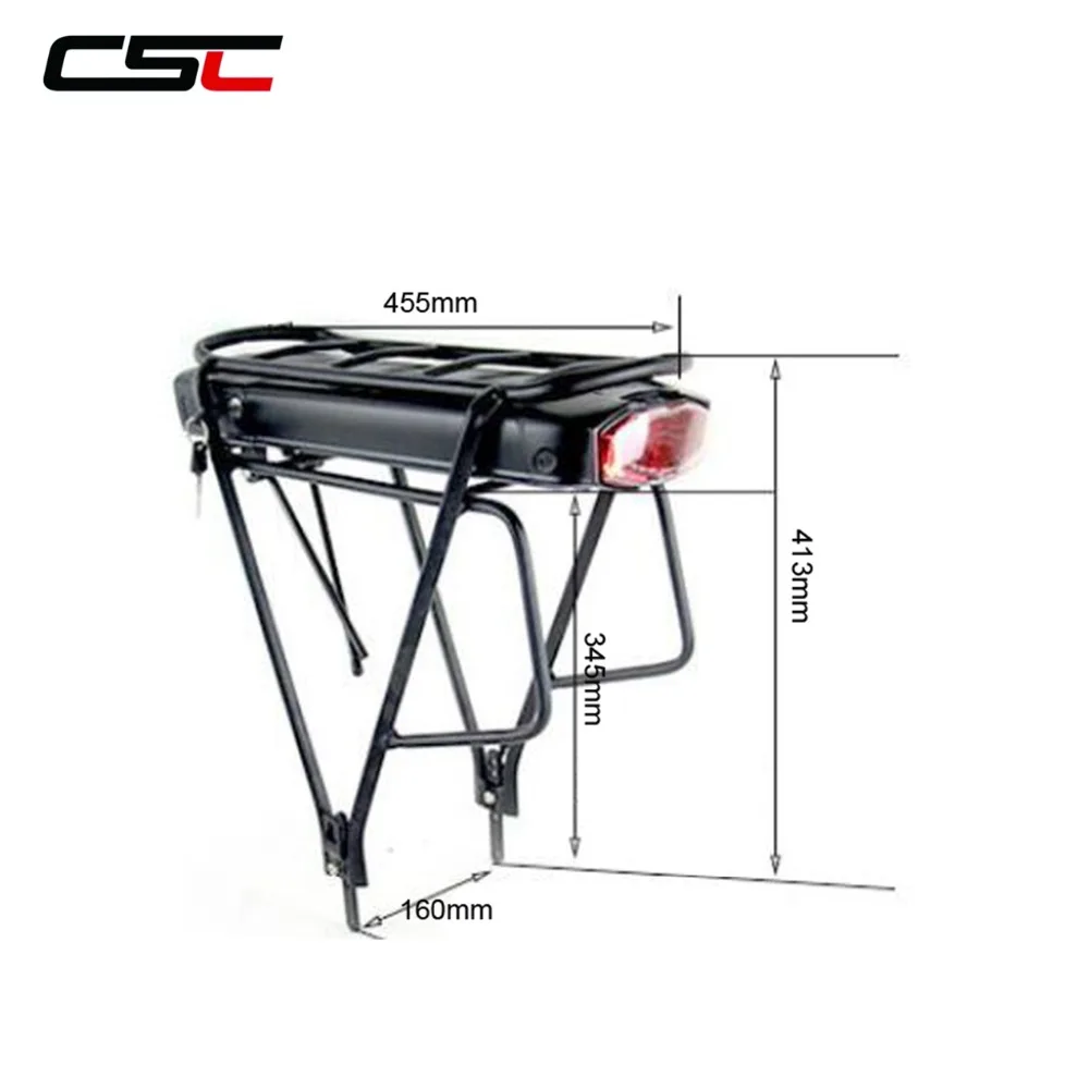 36V 48V Electric Bicycle Rear Rack Battery 10ah 13h 17.5Ah eBike Lithium-ion Battery Double Layer Luggage Rack 36V 10A Electric Bicycle 36V 10Ah Rear Rack Lithium Battery for Bafang BBS01 BBS02 eBike Battery + Double Layer Luggage Rack Electric Bike Battery Specifications: Nominal Voltage: 36V Nominal Capacity: 10Ah Composed Type: 10Series4Paralles10S4 P Cells: Brand 18650 2500mAh Power Cells BMS: 20 Amp continuous 50±10Amp maximum Fit Motor Power : 36V 250W 350W Charge Current: 2-5A Charge Cut-off Voltage: 42V Discharge Cut-off Voltage: 30V Discharge Temperature: -20 to 65°C Charge Temperature: 0 to 45°C Dimensions: 435*155*50mm Battery Weight: 3.7kg Cycle life: ≥80% capacity after 800 cycles. 36V 12.5A Electric bike 36V 13Ah Rear Rack Lithium Battery for Bafang BBS01 BBS02 eBike Battery + Double Layer Luggage Rack Electric Bike Battery Specifications: Nominal Voltage: 36V Nominal Capacity: 13Ah Composed Type: 10Series5Paralles10S5 P Cells: Brand 18650 2500mAh Power Cells BMS: 20 Amp continuous 50±10Amp maximum Fit Motor Power : 36V 250W 350W 500W Charge Current: 2-5A Charge Cut-off Voltage: 42V Discharge Cut-off Voltage: 30V Discharge Temperature: -20 to 65°C Charge Temperature: 0 to 45°C Dimensions: 435*155*50mm Battery Weight: 3.7kg Cycle life: ≥80% capacity after 800 cycles. 36V 17.5A Samsung CELL 36V 17.5Ah Rear Rack Electric bike Lithium Battery for Bafang BBS01 BBS02 + Double Layer Luggage Rack 500W 750W Electric Bike Battery Specifications: Nominal Voltage: 36V Nominal Capacity: 17.5Ah Composed Type: 10Series5Paralles10S5 P Cells: Samsung 18650 3500mAh Power Cells BMS: 20 Amp continuous 70±10Amp maximum Fit Motor Power : 36V 250W 350W 500W 750W Charge Current: 2-5A Charge Cut-off Voltage: 42V Discharge Cut-off Voltage: 30V Discharge Temperature: -20 to 65°C Charge Temperature: 0 to 45°C Dimensions: 435*155*50mm Battery Weight: 3.7kg Cycle life: ≥80% capacity after 800 cycles. 48V 12.8A LG cell Electric Bike Battery Specifications: Nominal Voltage: 48V Nominal Capacity: 12.8Ah Composed Type: 13Series 4Paralles 10S5 P Cells: 18650 3200mAh Power LG Brand Cell BMS: 30Amp continuous 70±10Amp maximum Fit Motor Power : 48v 500w , 1000w Charge Current: 2-5ACharge Cut-off Voltage: 52V Discharge Cut-off Voltage: 39V Discharge Temperature: -20 to 65°C Charge Temperature: 0 to 45°C Dimensions: 435*155*50mm Battery Weight: 3.7kg Cycle life: ≥80% capacity after 800 cycles. 1)After you make an order, please leave a note about connector for controlleryou want below: Connector:3pin port,T Port,Andersson 1,XT60 Port,XT90 Port,Port,Anderson 2 If you do not reply us within within 3 days after your payment, we will send you XT60 Port Detailed Images Packing & Delivery certificate
